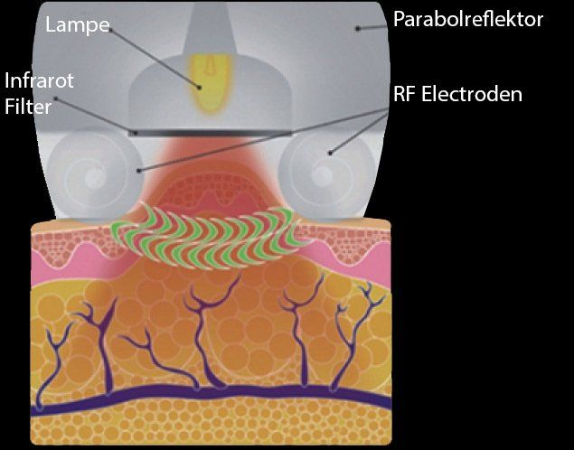 It combines infrared light, bipolar Radio Frequency energy, focused ultrasound, vacuum and mechanical rollers. There is a deep warming of the fat cells, the surrounding connective tissue and the underlying dermal collagen fibers. The treatment attacks the deformed fat cells of cellulite and smoothes them, so unwanted dents disappear. Furthermore, the toning and texture of the skin is strengthened.
